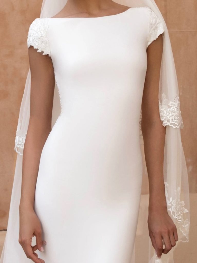 Per finire il nostro excursus su come scegliere la scollatura dell'abito da sposa, non potevamo dimenticare quella vedo non vedo. L'inserto in tessuto vedo non vedo copre la parte superiore del corpetto alla base del collo o sulle spalle, per una sofisticata sensualità.