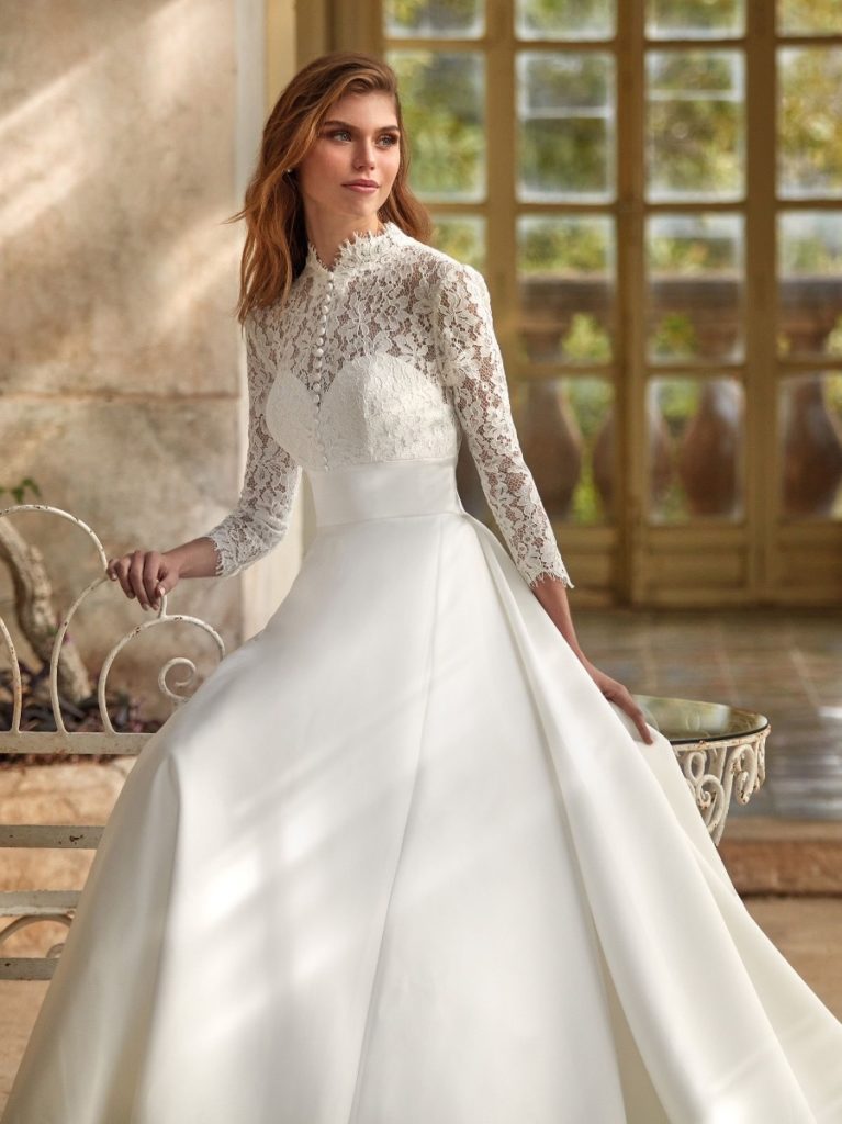 Classica e chic, è quella adatta per chi vuole scegliere la scollatura dell'abito da sposa per un look tradizionale. Oltre a donare la massima copertura, regala un'eleganza senza tempo alla figura. E, perché no, si può giocare con pizzi e tulle per sdrammatizzarla...