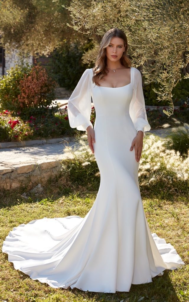Gli abiti da sposa a maniche lunghe sono una scelta elegante e senza tempo per le spose che preferiscono un look minimal. Potrete spaziare tra un’ampia varietà di stili, dai tradizionali abiti principeschi ai modelli a sirena, ma evitando le decorazioni che appesantiscono. Questi tipi di abiti sono perfetti per le spose che desiderano un look chic.