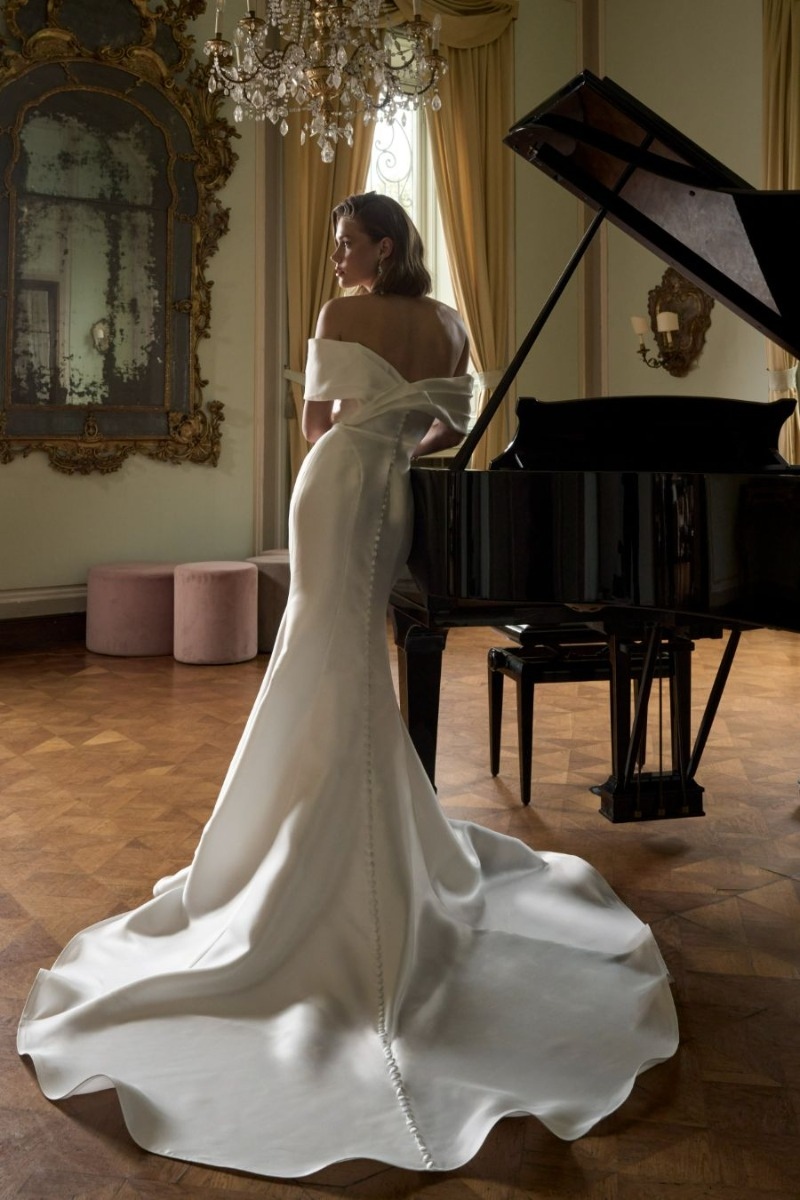 I bottoni ricoperti di tessuto comunemente usati sugli abiti da sposa non sono solo funzionali, ma anche belli. E oggi diventano protagonisti grazie a rivisitazioni sorprendenti che li mettono ben in vista. Posizionati sulla parte frontale dei corsetti o su tutto il retro, completano i vestiti più lineari aggiungendo un tocco di classe.
