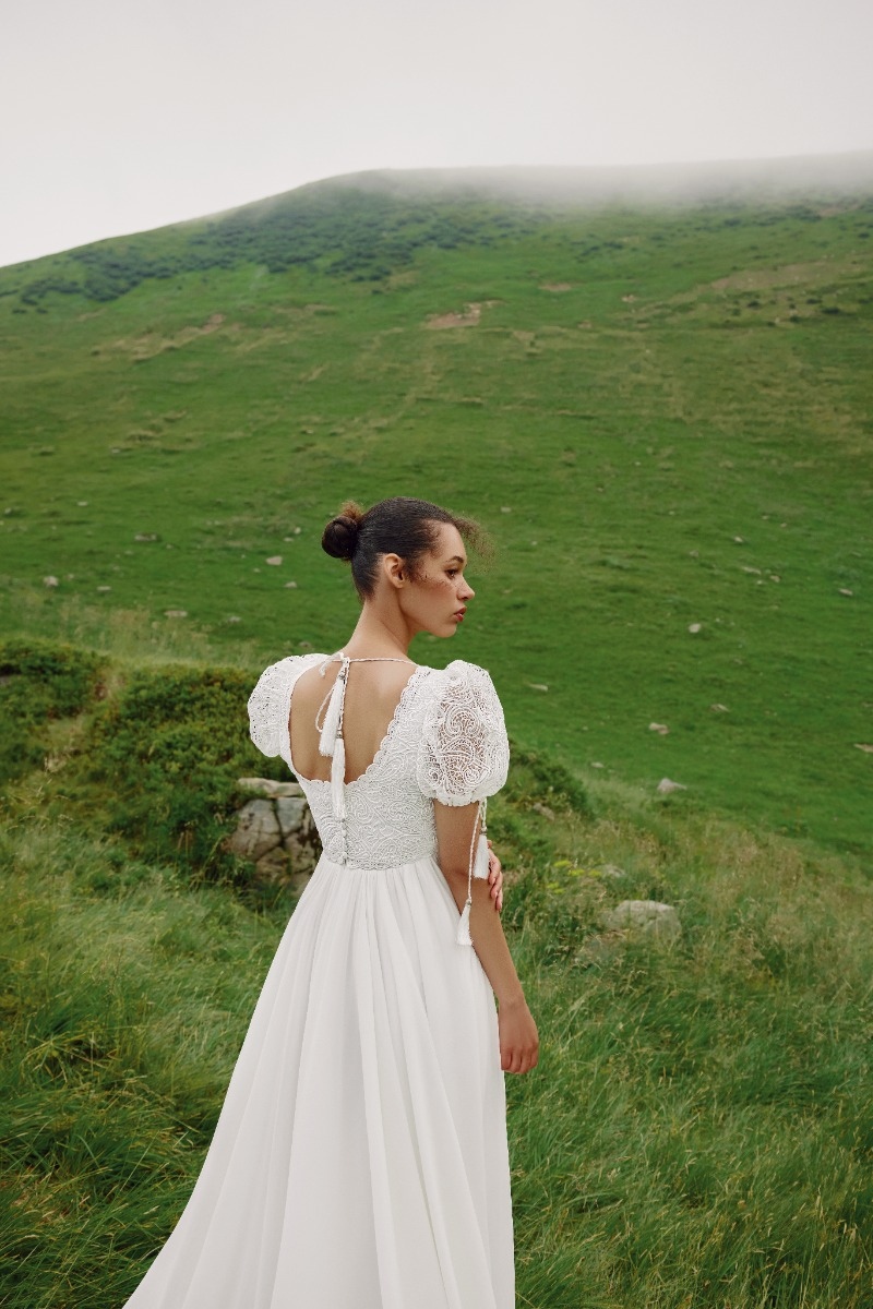 Tra le altre caratteristiche chiave di un abito da sposa bohémien ci sono la silhouette scivolata e le maniche a campana o comunque molto ampie, per un look etereo. Niente stecche e corsetti, quindi, ma strati leggeri movimentati da texture e motivi floreali che evocano il mondo della natura. Il tocco finale? Un’ispirazione etnica che si fonde con echi vintage che evocano soprattutto gli anni Settanta e la cultura hippie.