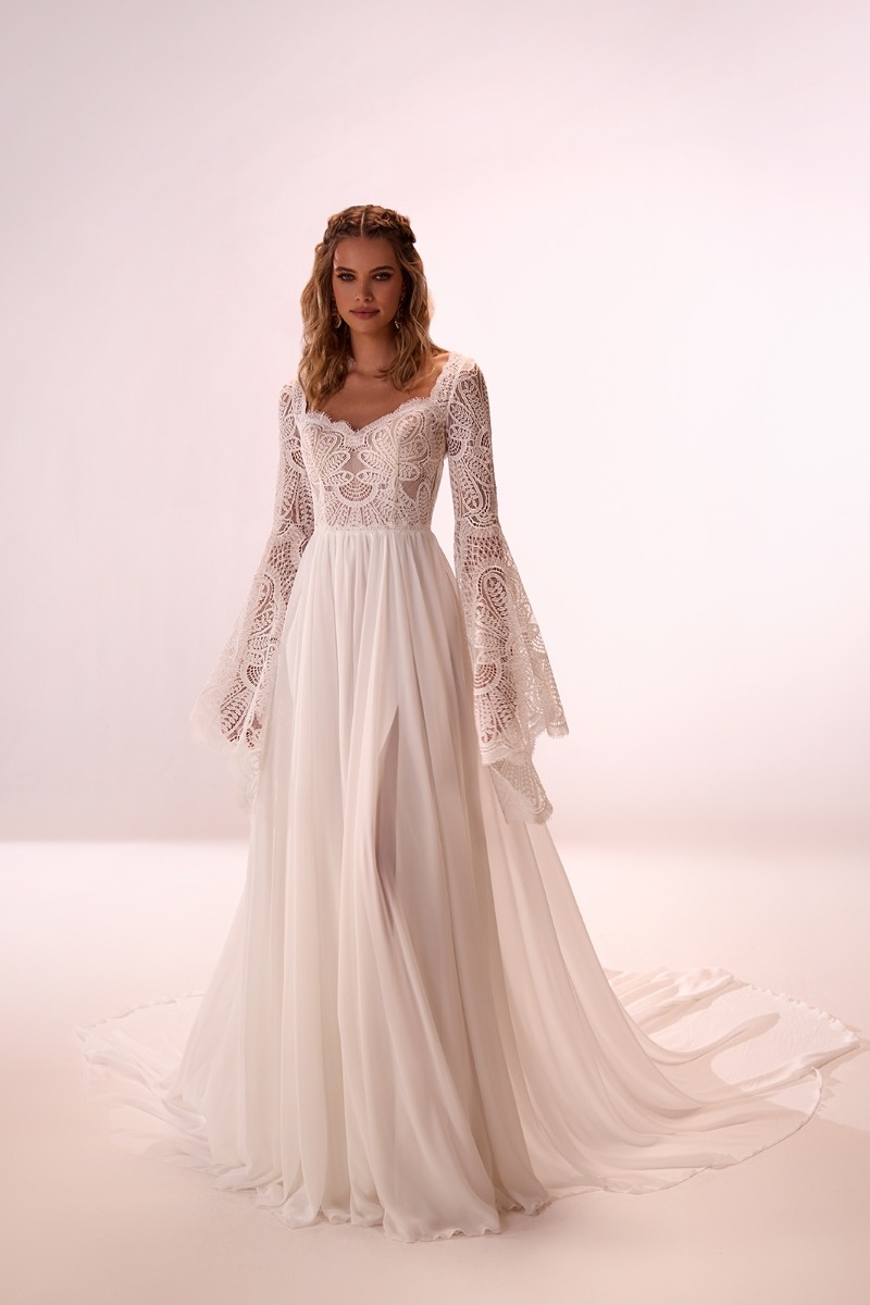 Non c’è una sola tipologia di abito da sposa bohémien: visto che questo stile si basa sulla libertà assoluta, l’importante è scegliere un modello che punti tutto sulla leggerezza. Ecco qualche esempio: