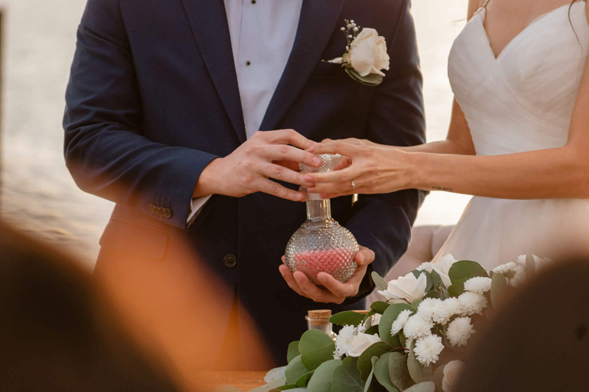 Il bouquet da sposa è molto più di una splendida composizione floreale: come l’abito da sposa e il velo, è protagonista dei momenti più simbolici della giornata, quindi assicuratevi di scattare qualche foto mentre lo tenete in mano e da solo. Lo stesso vale per la boutonnière dello sposo, che può essere fotografata già indossata o insieme agli anelli della coppia.