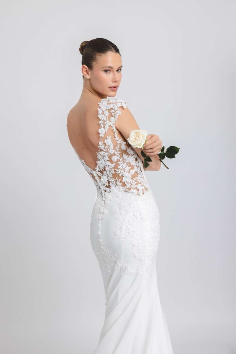 Come è fatto un abito da sposa a sirena in pizzo?