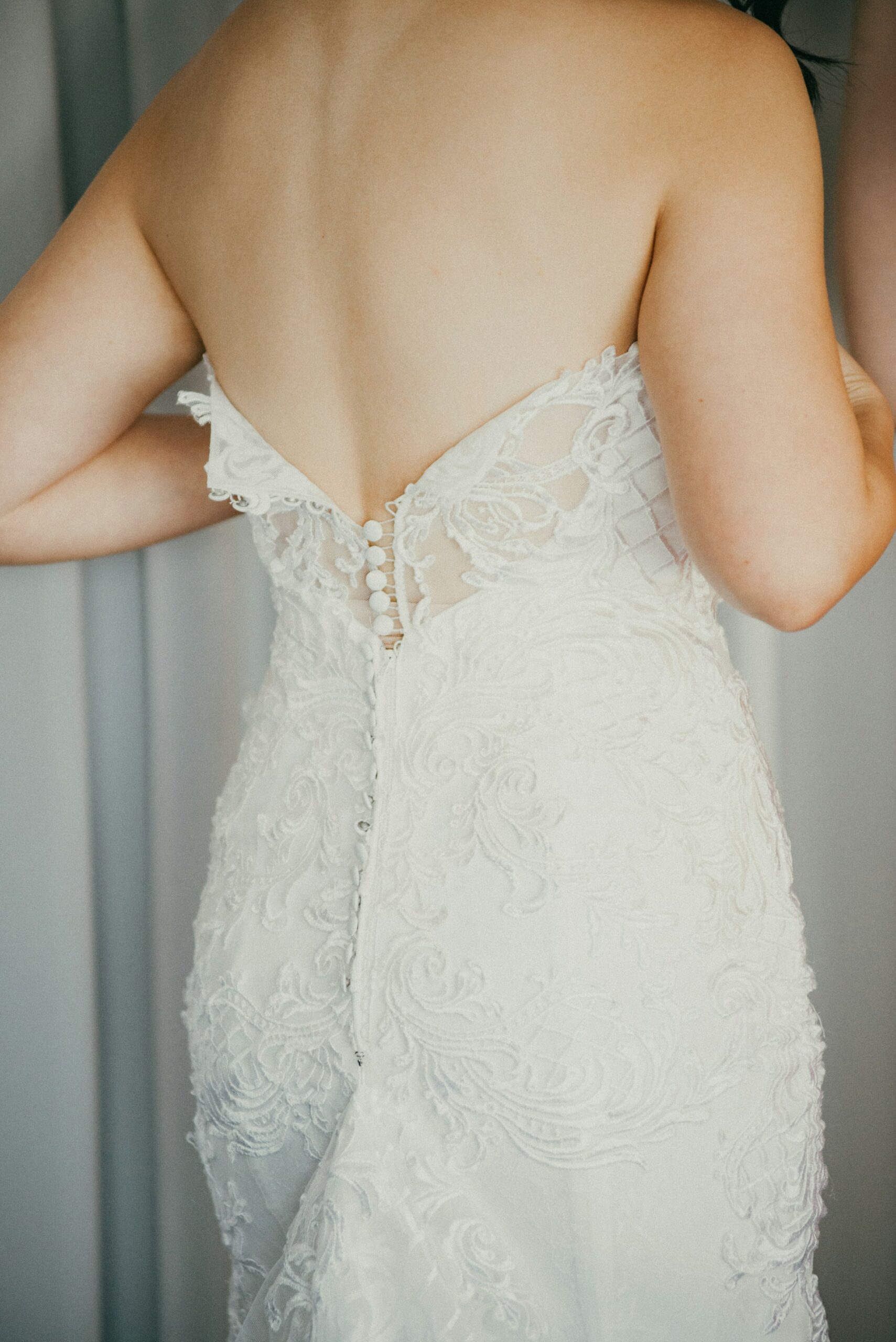 Forse questa è la situazione che più getta nel panico le future spose. Se è capitato anche a voi, fate un respiro profondo e, se ancora non l’avete fatto, fatevi aiutare da almeno due persone. Ricordate che indossare l’abito da sposa è un po’ più complicato che infilare un normale abito dalla testa. Poi procedete per gradi, senza fretta: